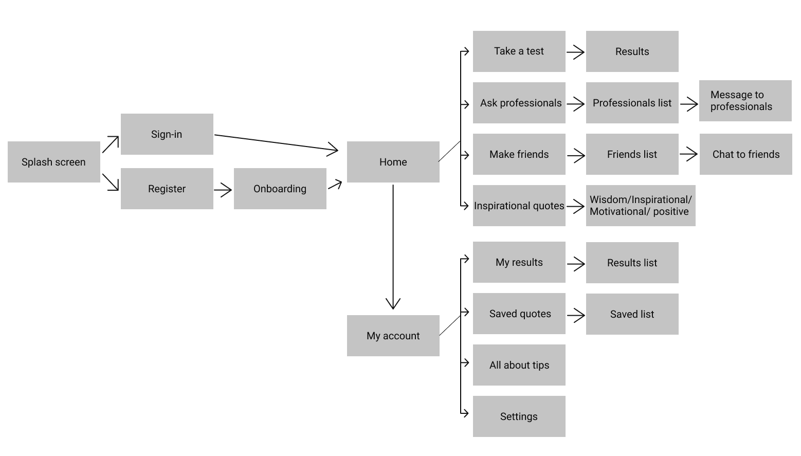 On the first wireframes, I had different intention of how I will make the test and the results, different concept and questions, it was more on how the person is feeling at that moment and right after taking the test, the results will be connected to other users results and feelings.